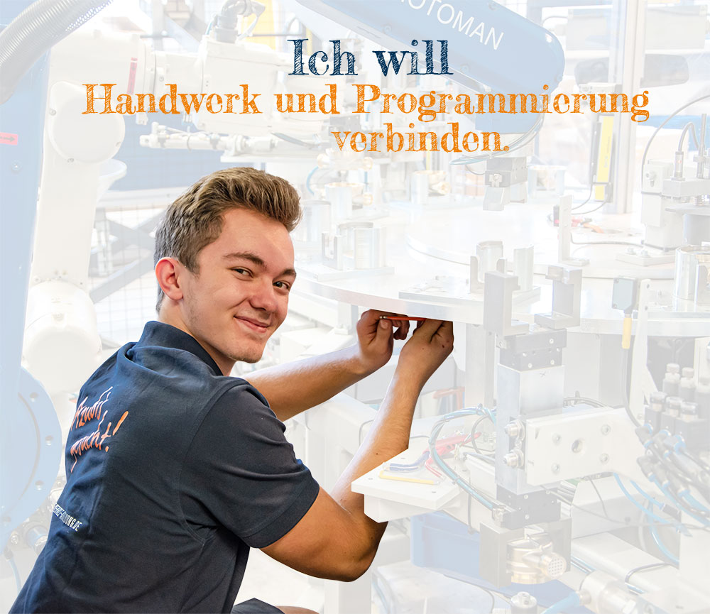 Als Mechatroniker ist Zukunft voll dein Ding: Wenn's drum geht, Maschinen Leben einzuhauchen, kommst du ins Spiel. An der Schnittstelle zwischen Elektronik, Mechanik und Programmierung sorgst du dafür, dass Anlagen und Roboter ihre Jobs machen. Handfestes Löten oder Schweißen gehören damit genauso zu deinen Aufgaben wie komplexes Programmieren.